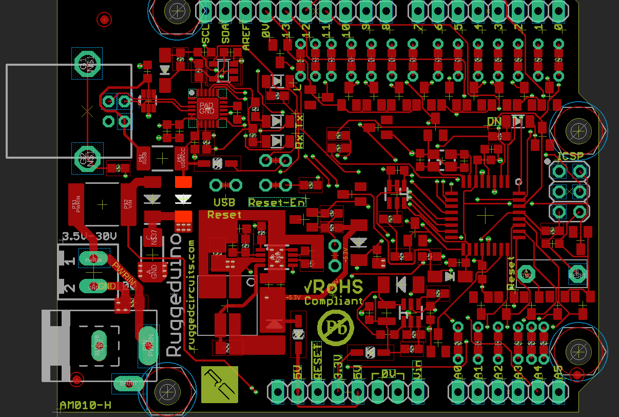 The Ruggeduino-SE was designed in the USA and is assembled in the USA using lead-free components and lead-free manufacturing and assembly processes.